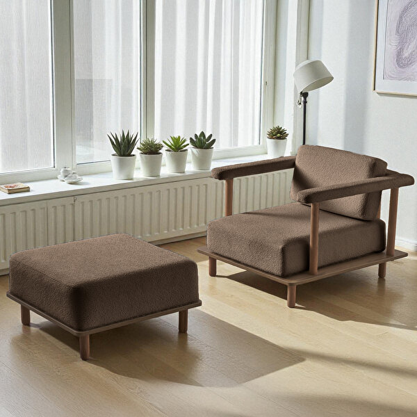 Eymense Pia Tekli Koltuk + Puf Kahverengi