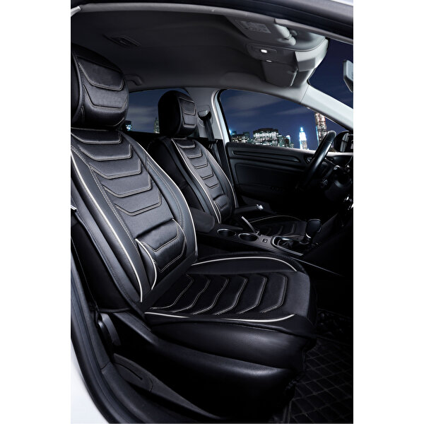 Fiat Brava Elx Uyumlu Lüx Deri Oto Koltuk Kılıfı Ön Arka Takım Set Eagle Si̇yah Beyaz Siyah-Beyaz