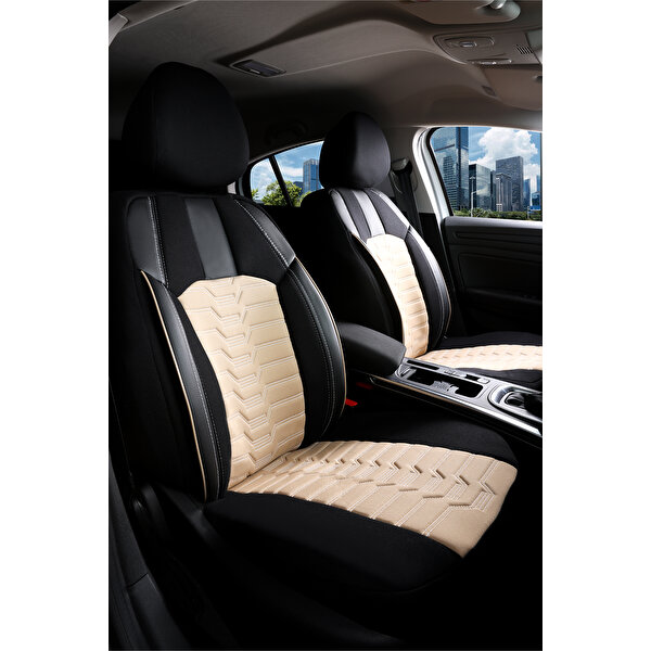 Fiat Fiorino Combi Mix 2+1 Parçalı Lüx Deri Detaylı Oto Koltuk Kılıfı Ön Arka Takım Platinum Bej Si̇yah Siyah-Bej