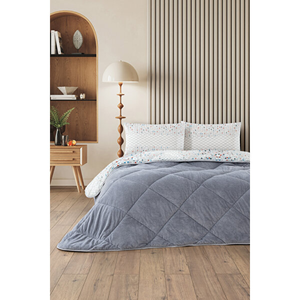 Formeya Evoria Çift Kişilik Wellsoft Yorgan Uyku Seti Lastikli Çarşaf+yastık Kılıflı Çift Kişilik Uyku Seti Gri