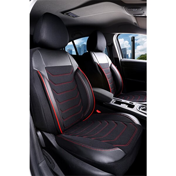FRESHSTART Chevrolet Cruze Hatchback Uyumlu Yarı Deri Oto Koltuk Kılıfı Ön Arka Takım Carbon Serisi Siyah Kırmızı