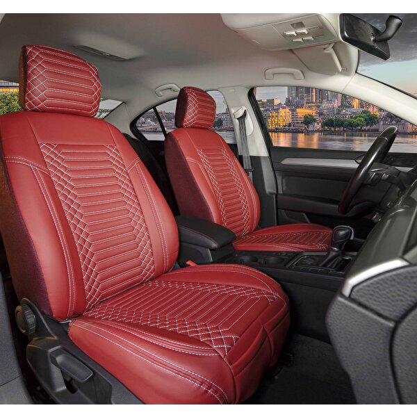 FRESHSTART Fiat Coupe Uyumlu Full Deri Oto Koltuk Kılıfı Ön Arka Set Kırmızı Exclusıve Model