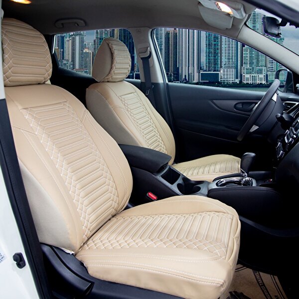 FRESHSTART Mahindra Pick-up Uyumlu Full Deri Oto Koltuk Kılıfı Ön Arka Set Bej Exclusıve Model