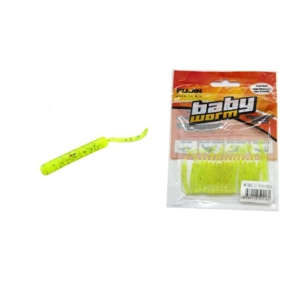 Yeni Fujin Baby Worm LRF silikonu, formu,kokusu ve elastik yapısı ile LRF avlarınızın vazgeçilmezi olacak. UV renk seçeneği ve Glow özeliği sayesinde gece,gündüz ayırt etmeden kullanabilirsiniz. Üretiminde kullanılan çevre dostu malzemeler sayesinde,deniz suyuna ve balık popülasyonuna zarar vermez. Dişli balıkların koparamadığı formu sayesinde uzun süre kullanabilirsiniz.