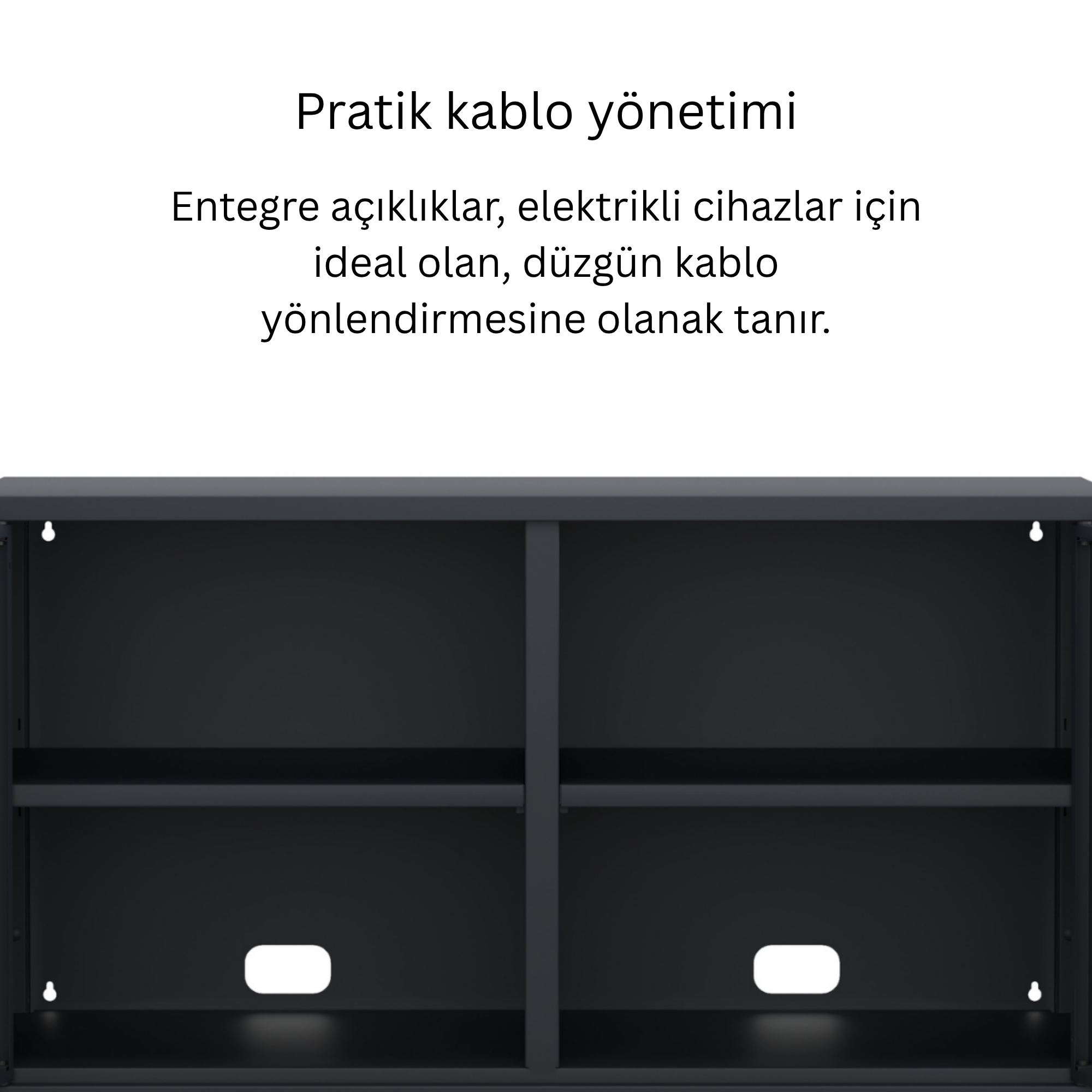Furni24 Tv Ünitesi, Tv Dolabı,2 Kapaklı Dolap 100,50 X 40 X 64,50 Cm - Ral 7016 Antrasit
