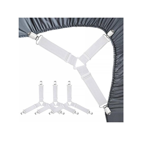 ****GÜÇLÜ MALZEME:4xÜÇGEN ÇARŞAF GERGİSİ,LASTİK BANT +PLASTİK TOKA,METAL TOKA ****AYARLANABİLİR VE ELASTİK:15 ila 55 cm.; ÇARŞAF BANTLARIMIZ HER UÇTA,ÇARŞAFA GÜVENLİ BİR ŞEKİLDE SABİTLENEBİLEN VE HER YATAK VE ÇARŞAF BOYUTU İÇİN TAMAMEN AYARLANABİLRN LASTİK ASKI VE KLİPSLERİ İLE TESLİM EDİLİR.; ****KULLANIMI KOLAY:ALETSİZ,SADECE ÇARŞAF 3 KÖŞEDEN TUTTURUN VE KELEPÇEYİ ÇARŞAFIN KENARINA SABİTLEYİN VE BANT UZUNLUĞU İHTİYACA GÖRE ESNETİLEBİLİR.; ÇARŞAFLARINIZIN 3KLİPS TAKIN VE4KÖŞE İÇİN TEKRARLAYIN.; AYARLANMIŞ KÖŞEYİ TEKRAR YATAĞIN ÜZERİNE KATLAYIN VE ARDINDAN KAYIŞLARDAKİ GERİLİMİ AYAR LAYIN ÇARŞAFINIZI SIKI VE GERGİN TUTAR; YATAĞINIZIN DÜZENLİ GÖRÜNMESİNİ SAĞLAR ****ÇOK YÖNLÜ KULLANIM İMKANLARI:ÇARŞAF VE KILIF TUTUCULARI ÇARŞAF, KOLTUK KILIFI,MASA ÖRTÜLERİNİ VEYA GERGİN TUTMAK İSTEDİĞİNİZ HERŞEY İÇİN UYGUNDUR.; BÖYLECE DÜZENSİZ VE SIK KAYAN ÇARŞAFLARIN ZAHMETİNDEN KURTULURSUNUZ