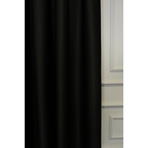 Goccia Home Çift Taraflı Blackout Ekstrafor Büzgülü Rustik Ve Kornişe Uyumlu Tek Kanat Fon Perde Siyah 400x270 cm
