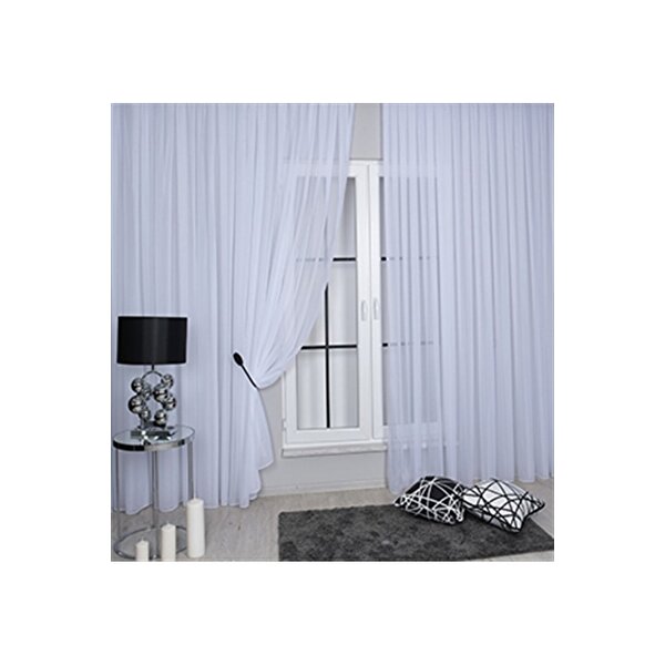Goccia Home Mikro İpek Vual Pilesiz Düz Tül Perde Kar Beyaz 300x280 cm