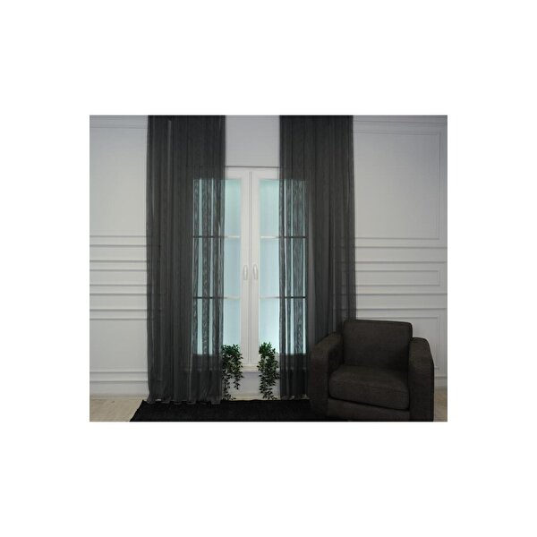 Goccia Home Murcia Dökümlü Tül Perde Pilesiz Antrasit 500x260 cm