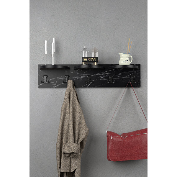 Gold Falez Askılık Duvar Elbise Askılığı Portmanto Bendir 80 Cm Siyah Mermer Desenli