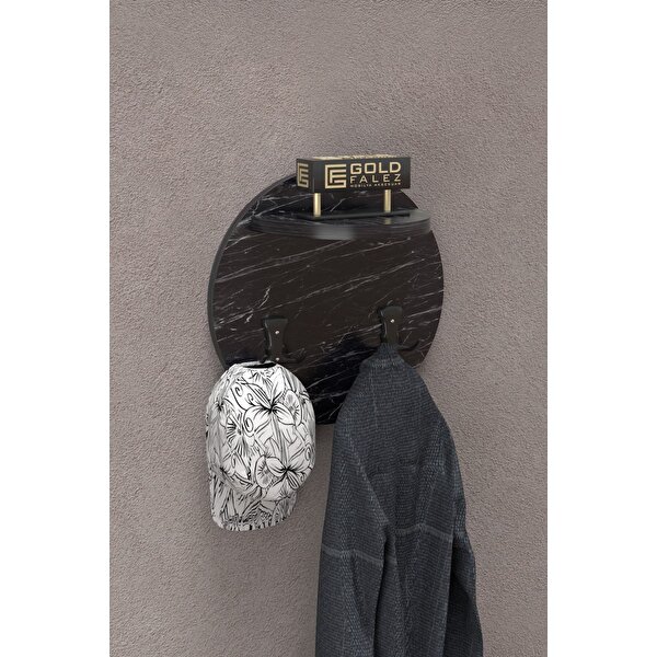 Gold Falez Askılık Duvar Elbise Askılığı Portmanto Üstü Bendir Siyah Mermer Desenli