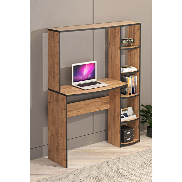 Gold Falez Çalışma Masası 5 Raflı Kitaplık Atlantik Çam Kahverengi
