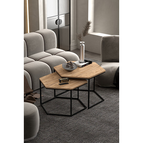 Gold Falez Orta Sehpa Altıgen İkili Lüx Atlantik Çam Kahverengi