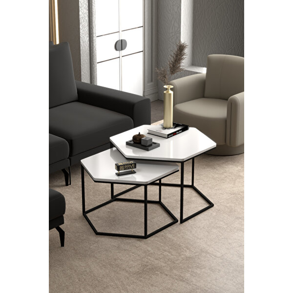 Gold Falez Orta Sehpa Altıgen İkili Lüx Beyaz
