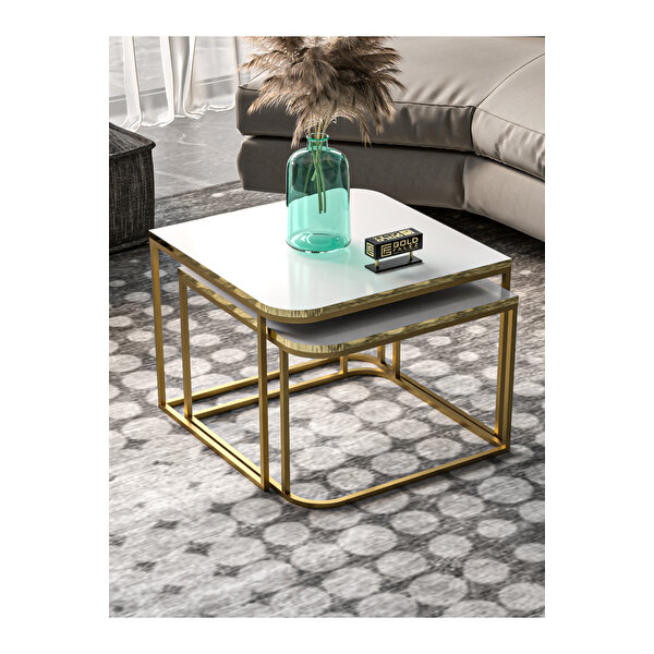Gold Falez Orta Sehpa Damla İkili Lüx Gold Beyaz Sarı