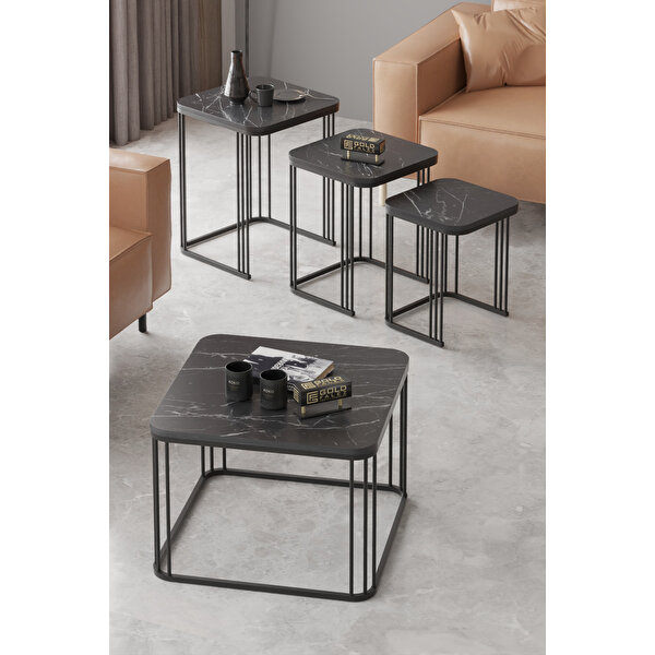 Gold Falez Orta Sehpa Ve Zigon Sehpa Alize Set Bendir Siyah