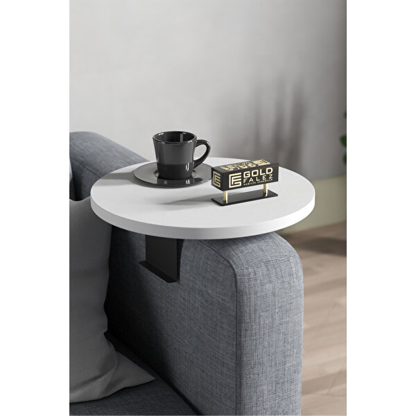Gold Falez Yan Sehpa Ayarlanabilir Tepsi Dekoratif Modern Tepsi Koltuk Sehpası Beyaz