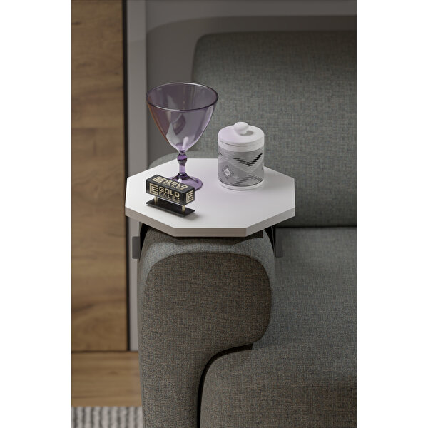Gold Falez Yan Sehpa Ayarlanabilir Tepsi Dekoratif Modern Tepsi Sekizgen Beyaz