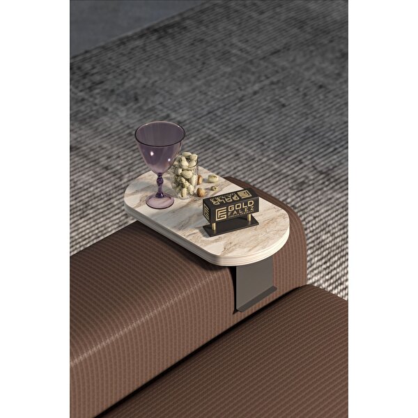 Gold Falez Yan Sehpa Ayarlanabilir Tepsi Oval Dekoratif Modern Yatay Dikey Koltuk Sehpası Efes Beyaz Mermer