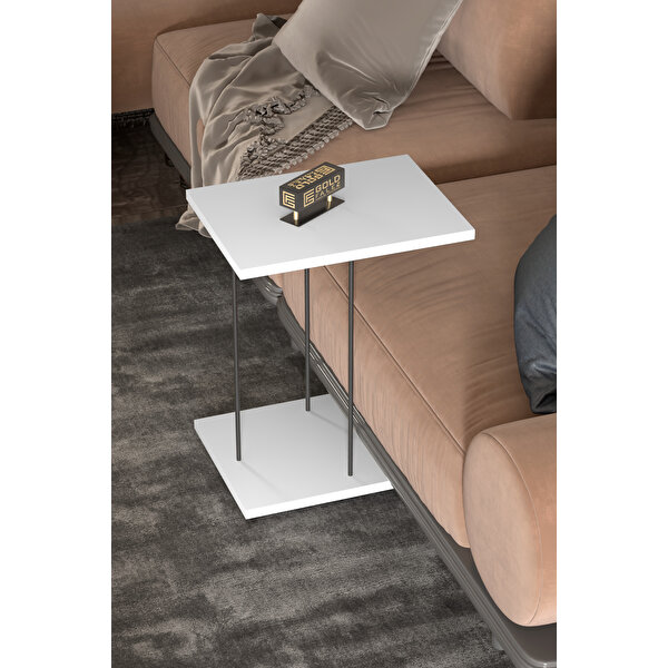 Gold Falez Yan Sehpa Tekerlekli Servis Sehpası Hnd Dikdörtgen Beyaz