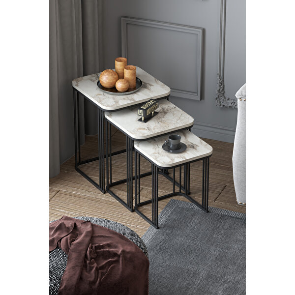 Gold Falez Zigon Sehpa Alize Beyaz Mermer Desen Ekru