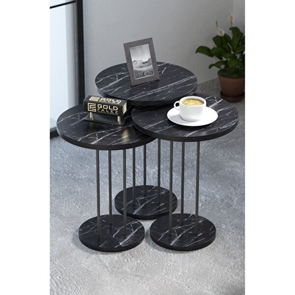 Ürün ölçüleri: ; · Tum ust tablalar 34 çaptır ; · Tum alt tablalar: 22 çaptır ; · Ayak yukseklik ; · Uzun ayak:48 cm ; · Orta boy ayak: 45 cm ; · Kucuk boy ayak:42 cm ; · Ust tabla yonga levha olup ayaklari 1.kalite metaldir.; ; · Kenarları 1. sınıf PVC bant ile kaplıdır.; ; · Uzun sure kullanim olmasi adina ürünün ortasinda 3 adet boru metal ayak mevcuttur.; ; · Kullanılan malzeme TSE, Avrupa Birliği EN, ISO 9001 ve FSC belgelerinesahiptir.; ; · Paketlerde kolay kurulum için gerekli tüm vida ve aksesuarlar bulunmaktadır.; ; · Ürünün montajı oldukça kolaydır.; Basit el aletleri ile kolayca kurulum yapabilirsiniz.; ; · Hızlı ve hatasız kurulum için parça üzerinde kurulum şeması ile uyumlu parça bulunmaktadır.; ; · Üzerinde bulunan aksesuarlar dahil değildir.; ;