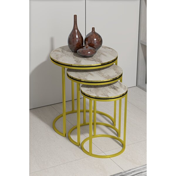 Gold Falez Zigon Sehpa C Lüx Çift Gold Efes Mermer