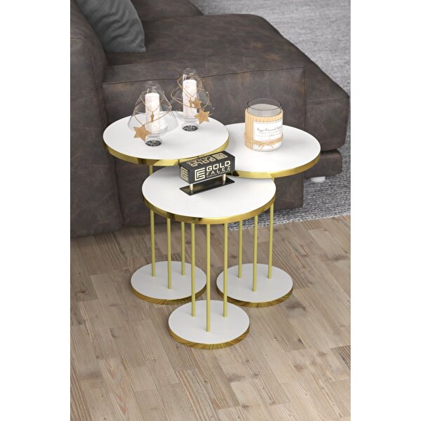 Gold Falez Zigon Sehpa Terra Gold Beyaz Beyaz-Altın