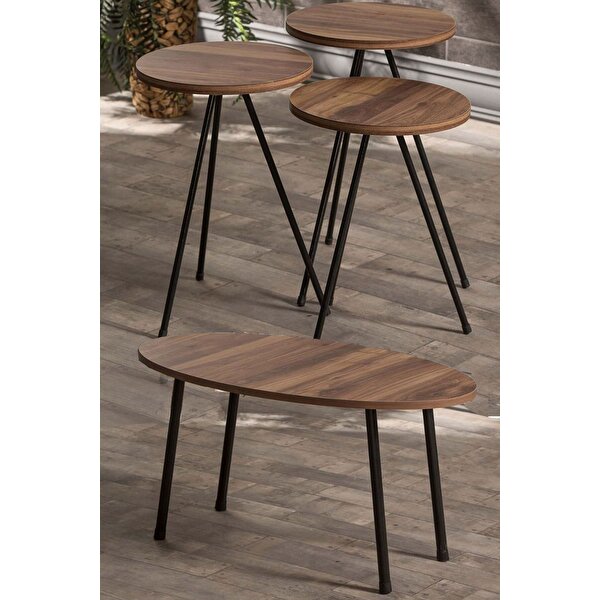 Gold Falez Zigon Sehpa Ve Orta Sehpa Elips Set Metal Ceviz Atlantik Çam