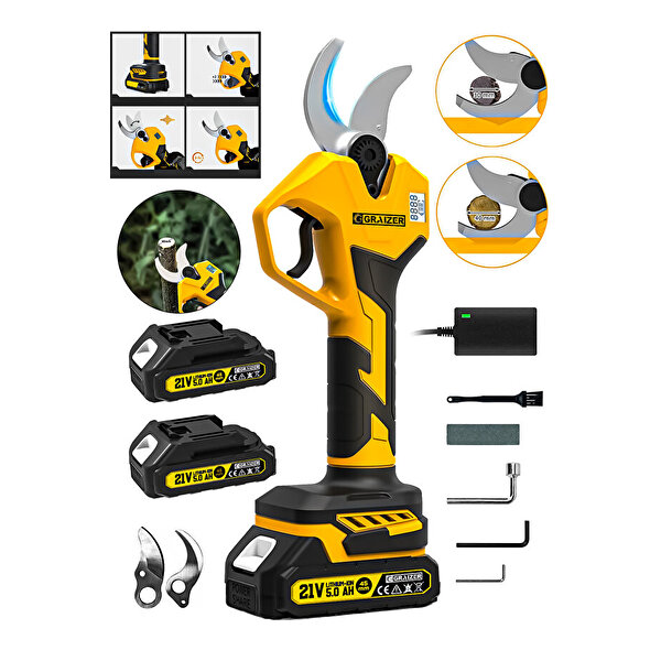 Graizer S-40 Mm Dijital Kömürsüz Akülü Bağ Dal Ağaç Kesme Biçme Budama Şarjlı Makası Makas Makinesi