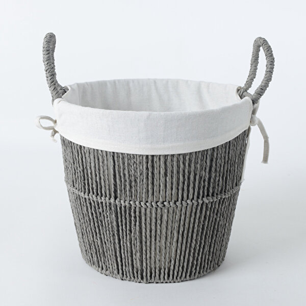Ürünün isminde geçen "Kağıt Sepet" tabiri, son yılların en trend dekorasyon malzemesi olan kağıt ipi (paper rope) işaret eder. Bu malzeme, doğal kağıt liflerinin bükülerek sağlam bir halat formuna getirilmesiyle oluşturulur. Görünüm olarak klasik hasıra benzese de, kağıt ip çok daha pürüzsüz, hafif ve modern bir dokuya sahiptir. Gri renkli bu özel örgü, plastik sepetlerin yapaylığından uzaklaşarak evinize doğallığı getirir. Malzemenin nefes alabilir yapısı sayesinde, içerisine koyduğunuz tekstil ürünleri (havlu, battaniye vb.) havasız kalmaz ve koku yapmaz. Ayrıca kağıt ip, hafifliğine rağmen oldukça dayanıklı bir yapıya sahiptir; bu da sepetin formunu uzun süre korumasını sağlar.