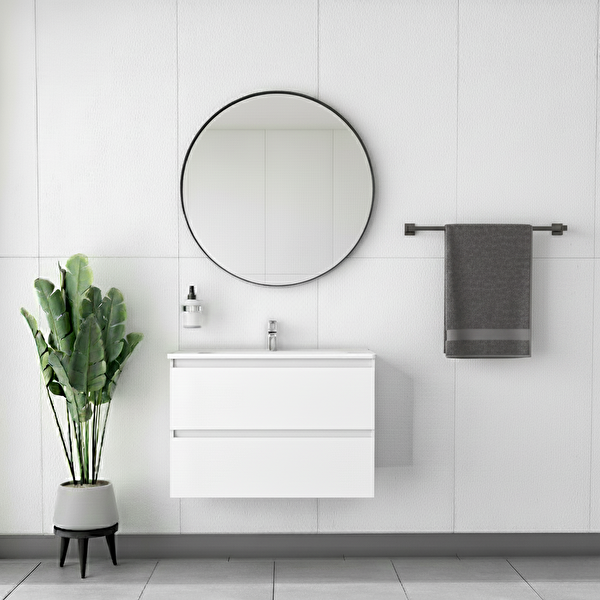 Gtm Banyo Alba Soft Aynalı 2 Çekmeceli Banyo Dolabı Beyaz 80 cm