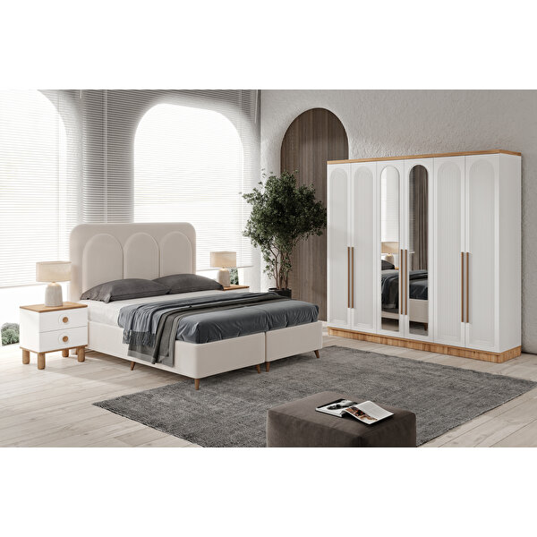 Rosa 6 Kapaklı Yatak Odası Takımı, beyaz kapakları ve Atlantik çam gövdesiyle çift renkli şık bir tasarım sunar. Uzun ve ahşap renkli dekoratif kulplarıyla zarif ve modern bir atmosfer yaratır. Takım, yüksek kaliteli MDF malzeme ile üretilmiş olup, fonksiyonellik ve estetiği bir arada sunar. Takım İçeriği: 1 adet 6 kapaklı gardırop 2 adet komodin 1 adet aynalı şifonyer 1 adet çift kişilik başlık 1 adet 150x200 cm çift kişilik baza Teknik Özellikler: Gardırop: Beyaz kapaklar, Atlantik çam gövde, MDF Kulplar: Uzun, ahşap renkli dekoratif Komodin ve şifonyer: Fonksiyonel çekmecelerle donatılmıştır Baza: Dayanıklı ve sağlam yapıya sahiptir Gardırop yüksekliği: 210 cm, ayaklı tasarım Ürün Ölçüleri: Gardırop: Genişlik 210 cm × Yükseklik 206 cm × Derinlik 52 cm Komodin (2 adet): Genişlik 50 cm × Yükseklik 54,5 cm × Derinlik 40 cm Aynalı Şifonyer: Genişlik 90 cm × Yükseklik 78 cm × Derinlik 45 cm Başlık: Genişlik 160 cm Baza: 150 × 200 cm çift kişilik Verilen Hizmetler: Ücretsiz teslimat (İstanbul, Kocaeli, Tekirdağ, Yalova, Sakarya) Ücretsiz montaj hizmeti teslimat sırasında sağlanır Teslimat öncesi planlama ve randevu yapılır Satış sonrası destek sağlanmaktadır Önemli Bilgilendirme: Teslimat yalnızca İstanbul, Kocaeli, Tekirdağ, Yalova ve Sakarya illerine yapılmaktadır. Montaj hizmeti yalnızca ürün teslimatı sırasında verilmektedir Kurulum yapılacak alan önceden hazır olmalıdır Asansör bulunmayan yüksek katlara teslimat yapılamamaktadır Merkeze uzak kırsal bölgeler ve adalar teslimat kapsamı dışındadır