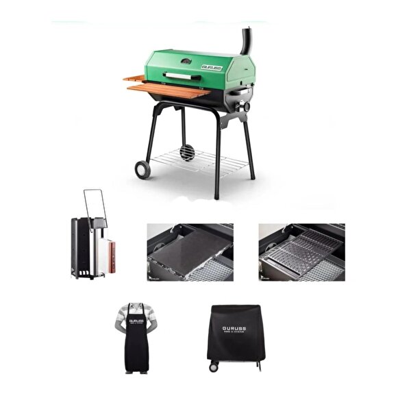 Guruss CG-075 Barbekü Mangal Seti| Kömürlü | 75 Cm | Yeşil | Tam Set