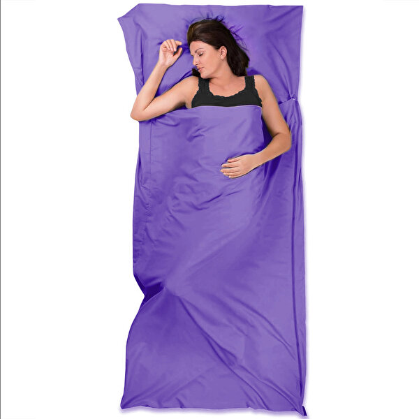 Haegs Seyahat Uyku Nevresimi, %100 Pamuk, Hafif Kompakt Taşınabilir Seyahat Tipi Nevresim Takımı, Kamp Çadır Çarşafı 220 X 105cm Lila