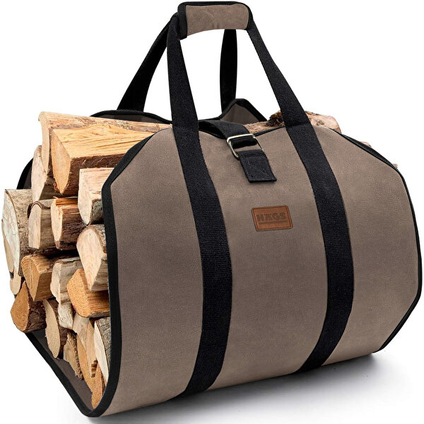 HAEGS Haegs Şömine Odun Çantası, Yakacak Kütük Taşıma Depolama Çantası, Şömine Odun Sobası Aksesuarları -kahverengi