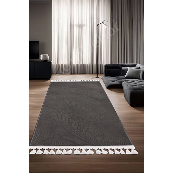 Halı Cool Antrasit Sahra Kaymaz Yıkanabilir Saçaklı Kare Yolluk Salon Halısı Modelleri 100x650 cm