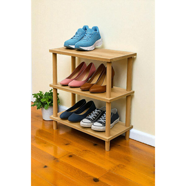 HESA Dekoratif 3 Raflı Ahşap Ayaklı Çok Amaçlı Kitaplık Ayakkabılık Mutfak Rafı - Atlantik Çam