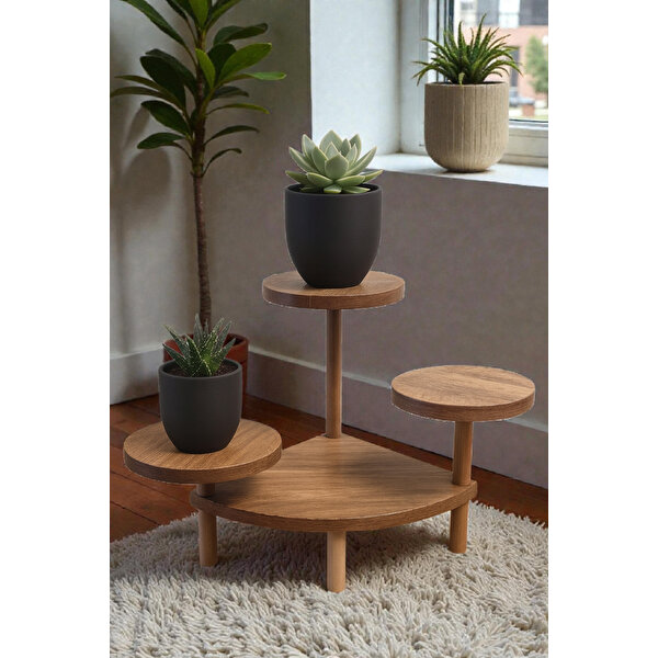 HESAWOOD ÇAM 3LÜ KöşeAHŞAP SAKSILIK / 🎨 Kullanım Alanları: Evinizin her alanında dekoratif olarak kullanabilirsiniz.; Çiçeklik, , abajur veya çeşitli eşyalarınızı koymak için ideal.; Minimalist tasarımıyla salon, balkon, oturma odası veya ofis dekorasyonuna uyum sağlar.; --- 🪵 Malzeme ve Kalite: Ürün ayakları %100 doğal ahşap malzemeden üretilmiştir.; Sehpa yüzeyinde 18 mm kalınlığında 1. sınıf yonga levha kullanılmıştır.; Ürün TSE, Avrupa Birliği EN, ISO 9001 ve FSC sertifikalarına sahiptir.; E1 standartlarına uygun olup, kanserojen madde içermez.; --- 📏 Ürün Ölçüleri: Üst tabla çapı: 23 x 23 1. Ayak yüksekliği 9.5cm 2.Ayak yüksekliği 14cm 3.ayak yüksekliği 20cm En alt raf ayağı 9.5cm En alt raf ölçüsü 28*25cm 3gen köşe kısım Raf ve yuvarlak tabla kalınlığı 2cm Üzerindeki ve çevresindeki objeler fiyata dahil değildir.
