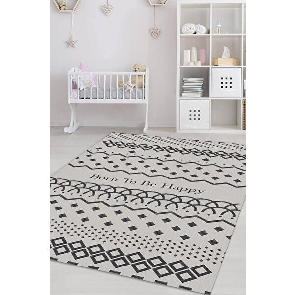 Homshtag Mutlu Olmak İçin Doğdu Gri Renkli Çocuk Odası Halısı Minimal Çocuk Halıs Geometrik Halı 200x300 cm