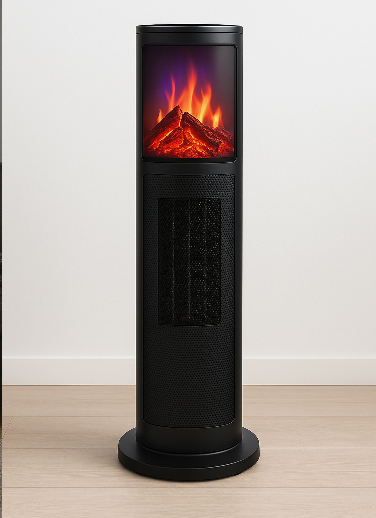 Hoogar German 2075 L Black Oben Seri Oled Şömineli Ekran Dijital Kule Tipi Seramik Fanlı Isıtıcı