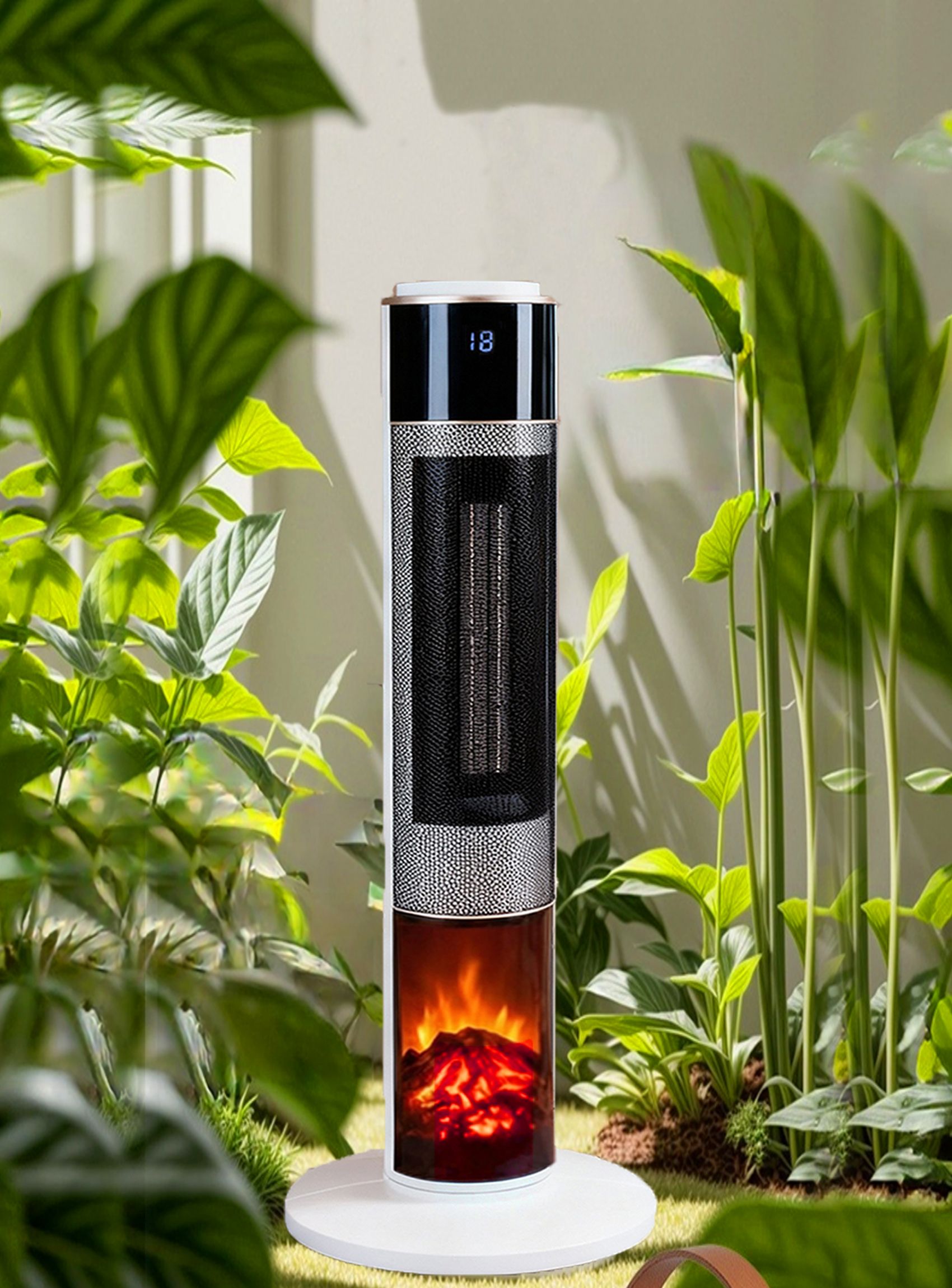 Hoogar German White Hg-blko Oled Oval Seri Şömineli Ekran Dijital Seramik Kule Tipi Fanlı Hızlı Isıtıcı Uzaktan Kumandalı