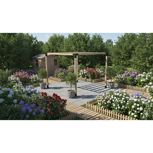 İ-Ahşap Iahşap 3 X 3 Metre Pergole Braket Seti 4 Ana Direkli Üstü Izgaralı Eğimli Pergole Braket Set