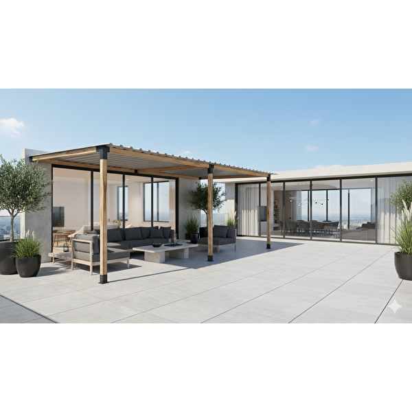 İ-Ahşap Iahşap 3 X 4.8 Metre Breketli Sundurma Pergole 3 Ana Direkli Trapezli Gölgelikli