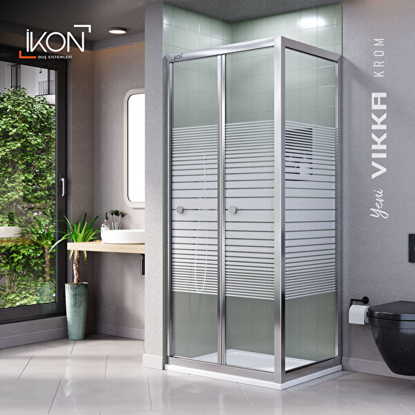 İkon Duş Sistemleri Vi̇kka | Krom, Buzlu Cam, Katlanır, Sabit Panelli Duşakabin 100x100 cm