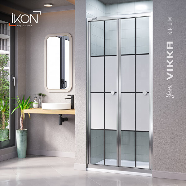 İkon Duş Sistemleri Vi̇kka | Krom, Karolaj Buzlu Cam, Katlanır Duşakabin 77 cm