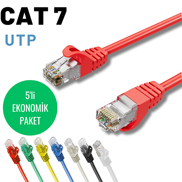 IRENIS CAT7 UTP Ethernet (Network, İnternet) Kablosu, RJ45 Konnektörlü, 5 adet 1 pakette 5 adet aynı renkten, aynı uzunlukta kablo bulunur. Farklı renkler tercih ediyorsanız, bize mesaj gönderiniz. 25cm - 50cm - 1m - 2m - 3m - 5m - 7.50m - 10m - 15m - 20m uzunluklarda sipariş edebilirsiniz İnternet bağlantınızın sağladığı en yüksek hıza ulaşabilirsiniz (10 Gbps = 10000 Mbps veri aktarım hızı sağlayabilir, oysa internetiniz en fazla 100 Mbps olacaktır) Ağınızdaki yüksek hızı destekleyen PC'ler ve tüm bileşenler arasında 10 Gbps (Gigabit) hızla veri iletişimi yapabilirsiniz. Bakır alaşımlı iç iletkenli olması nedeniyle hafiftir, kontak uçları altın kaplama sayesinde zamanla oksitlenmez . Uçları kabloya yapışıktır. UTP tipi ekransız kablodur, topraklama bağlantısı yoktur. Elektrik şebeke topraklaması sorunlu olan ev, işyeri lokal ağlarında sorunsuz bağlantı sağlar. Dış yüzeyi dayanıklı PVC ’dir, çok uzun yıllar kullanabilirsiniz . Zamanla sertleşip dökülmez. Bilgisayar, Modem, Kablosuz Erişim Cihazı, Yazıcı, Tarayıcı, NAS Depolama Ünitesi, Smart TV, Android Box, Voip Telefon, IP Güvenlik Kamerası, Playstation, Xbox, Switch ve benzeri tüm lokal ağ cihazlarının bağlantısında kullanabilirsiniz. İhtiyacınıza uygun uzunlukta sahip olabilirsiniz. 10 farklı uzunluk seçeneği vardır. İstediğiniz renkte kablo kullanabilirsiniz. 7 ayrı renk seçeneği vardır. Çok kaliteli bir üründür. Fabrikasyon üretimdir. Almanya’dan ithal edilmiştir. 5 adetlik ekonomik paket 5 adet aynı uzunlukta kabloyu farklı renklerde istediğiniz taktirde "Mağazaya Soru Sor" butonunu tıklayarak bize mesaj gönderiniz (stoğumuzda bulunan renklerden istediğiniz şekilde karışık gönderebiliriz)