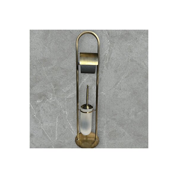 İsaoğlu Yapı Antik Gold Ayaklı Tuvalet Kağıtlığı Ve Klozet Fırçası Vintage Tasarım Pirinç Malzeme Antik Fırça