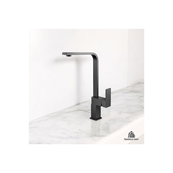 İsaoğlu Yapı Antrasit Mutfak Bataryası Kare Antrasit Gri Evye Armatür Premium