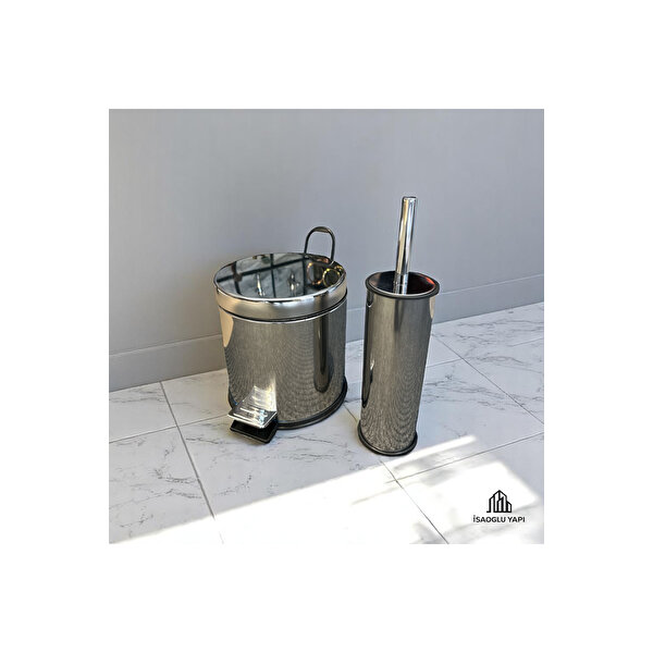 İsaoğlu Yapı Banyo Çöp Kovası Klozet Fırçası Seti Paslanmaz Malzeme Kapaklı Kova Ve Fırça
